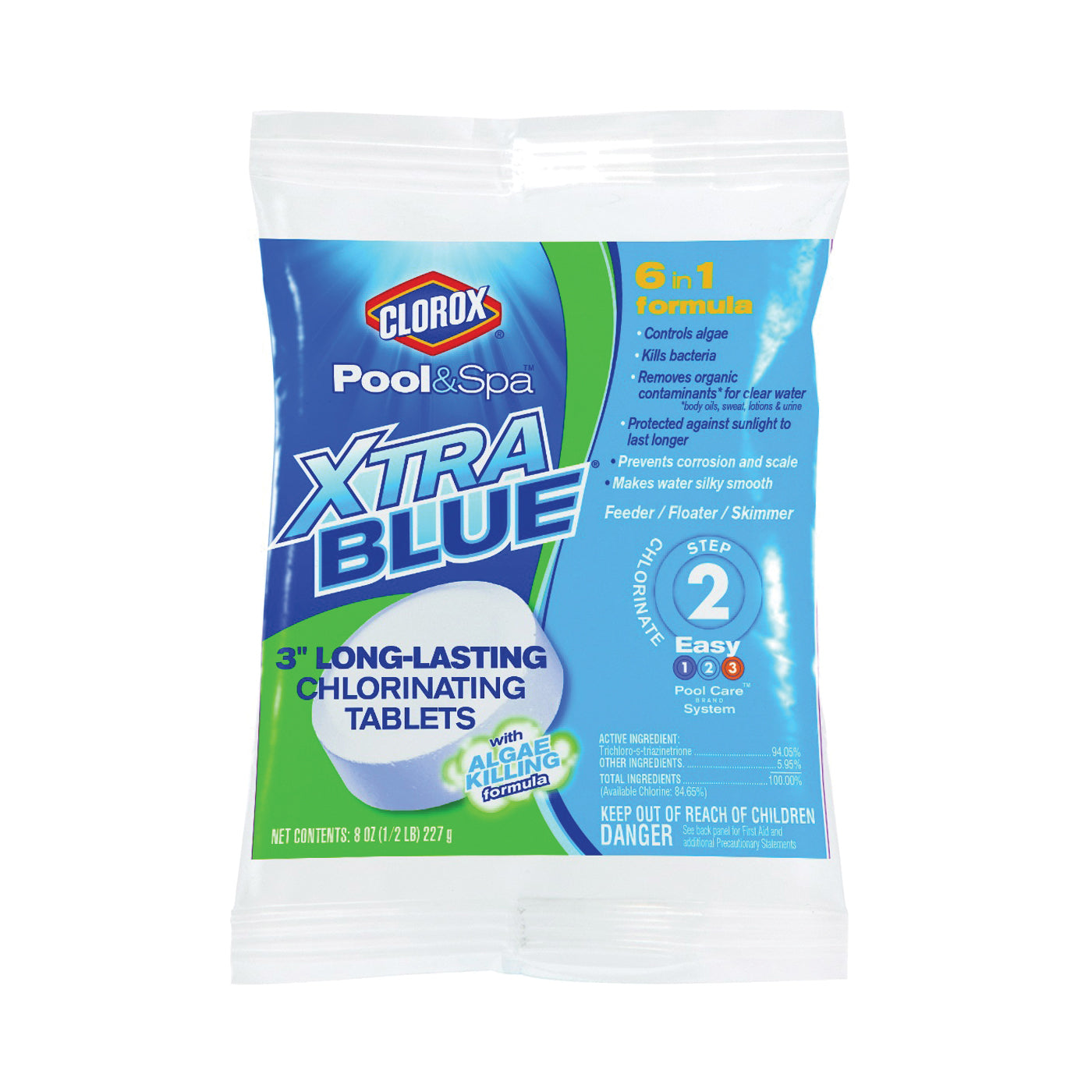 Long-lasting chlorinating tablets. Slow dissolving 6-in-1 formula. Kills bacteria. Controls algae, prevents corrosion, scale and metal staining. Makes water silky smooth. Includes built-in stabilizer to protect chlorine from sunlight degradation to last longer. Skimmer, feeder or floater application.