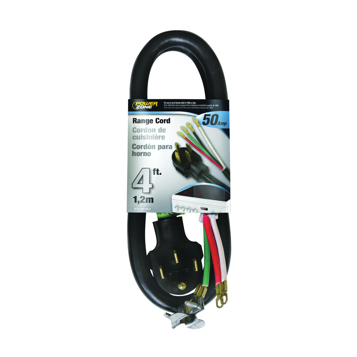 The PowerZone range cord vinyl construction resists cracking, grease, oils and acids. The molded-on plugs won't pull apart from the cord.