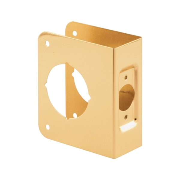 • Prime-Line U 9543 Lock and Door Reinforcer, 2-3/8 in Backset, 1-3/8 in Thick Door, Brass, 4-1/2 in H, 2-1/8 in Bore