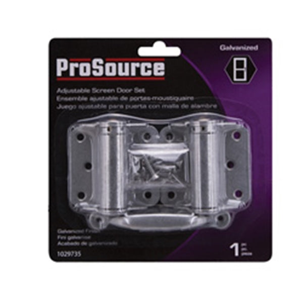 This hardware set is designed for wood screen and storm doors. Includes one pair of hinges, one screen door spring, door pull, hook and eye, and screws.