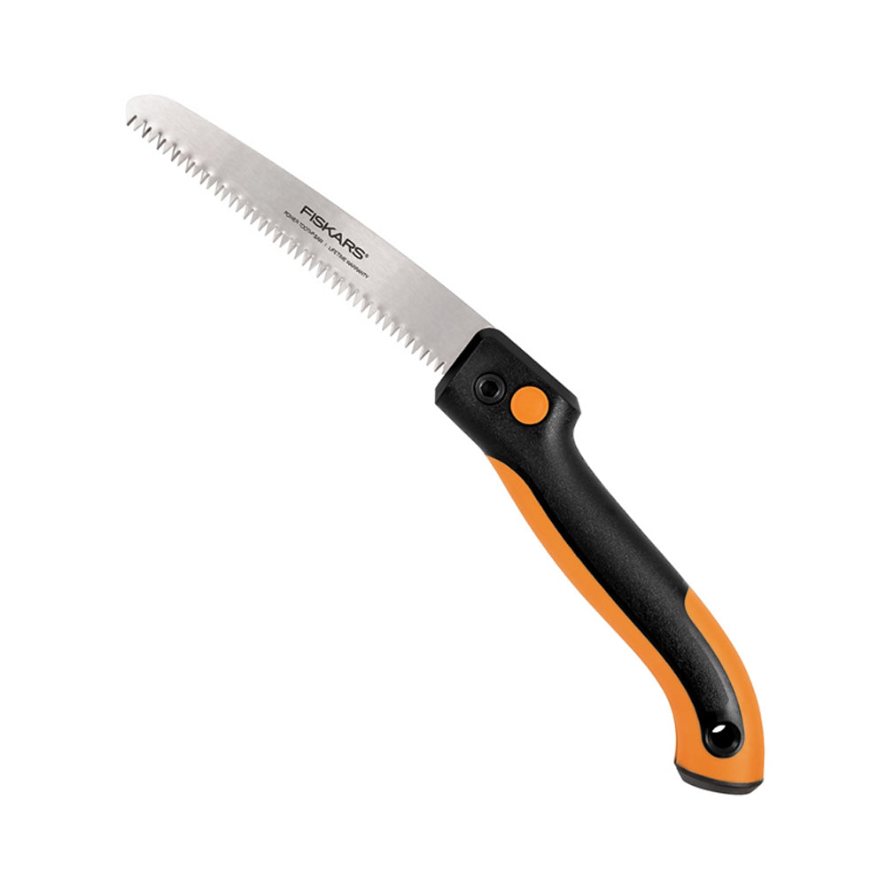 A great combination of cutting power and comfort, whether you're cutting overhand or making undercuts. Our POWER TOOTH® Softgrip® folding saw features a razor-sharp, triple-ground blade that makes aggressive cuts to help you power through thick branches faster. The saw blade locks in two different open positions, so whether you're making overhand cuts or undercuts, you still have maximum cutting power and control. Softgrip® touchpoints provide a comfortable, secure grip no matter which way you're cutting and our pruning saw even folds and locks for space-saving storage and safe transportation.
