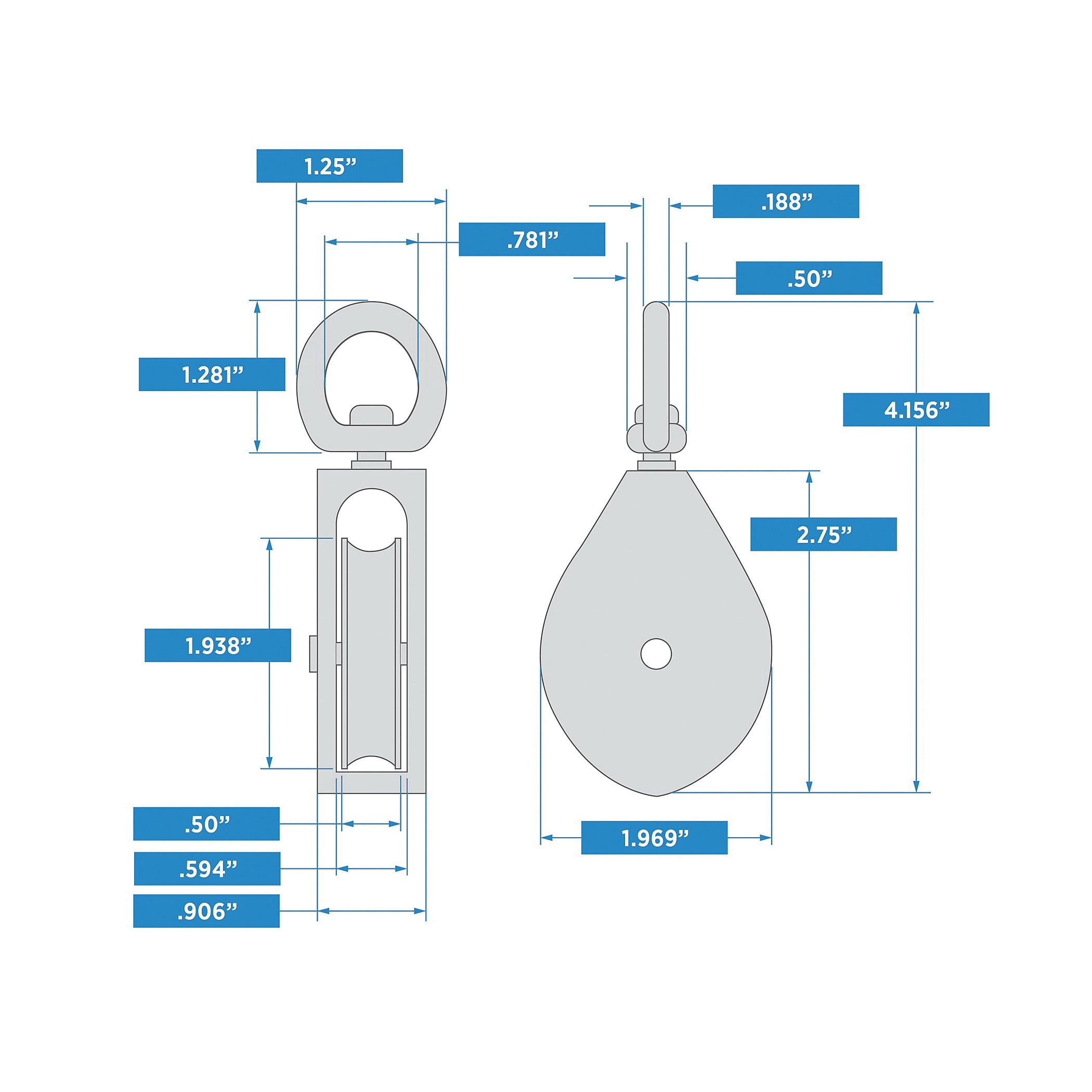 | Sheave Size | 1/2 in L x 1-15/16 in H |