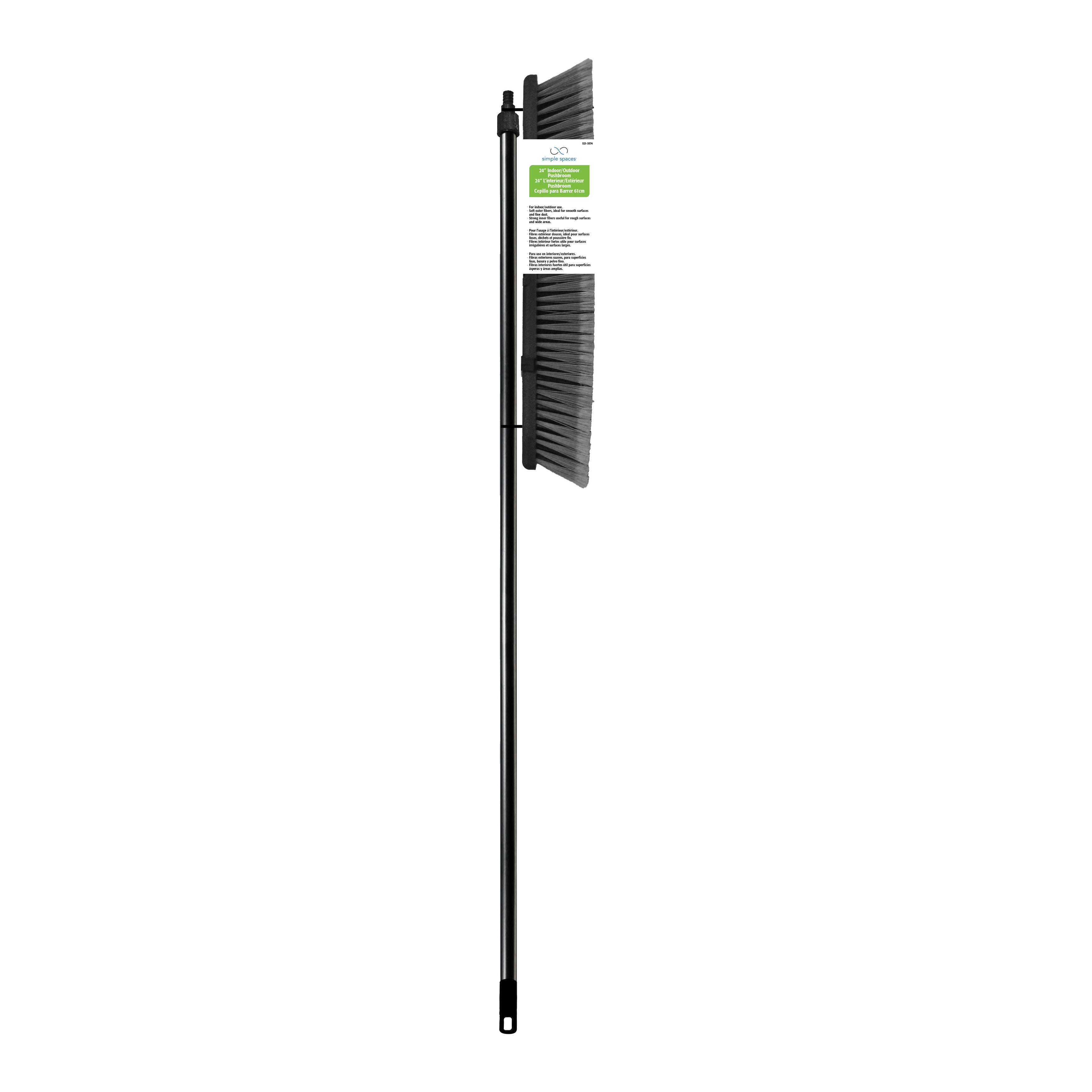 The Simple Space Push Broom is a 24 in indoor/outdoor push broom with dual fibers, soft fibers for sweeping dirt and debris as well as stiff fibers for patios, driveways, garages, decks etc. The handle is 54 in with threaded metal tip.