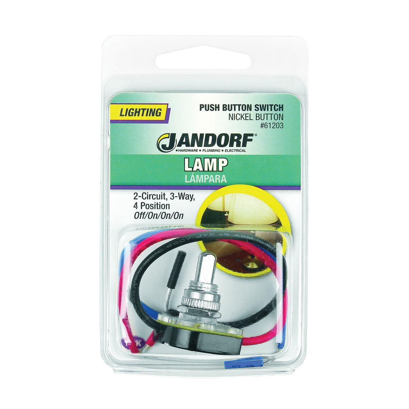 Jandorf Switch, 125/250 VAC, 3 A, 2 Pole, Switch Functions: Off/L-1/L-2/L1-2, Lead Wire Terminal, Nickel Button