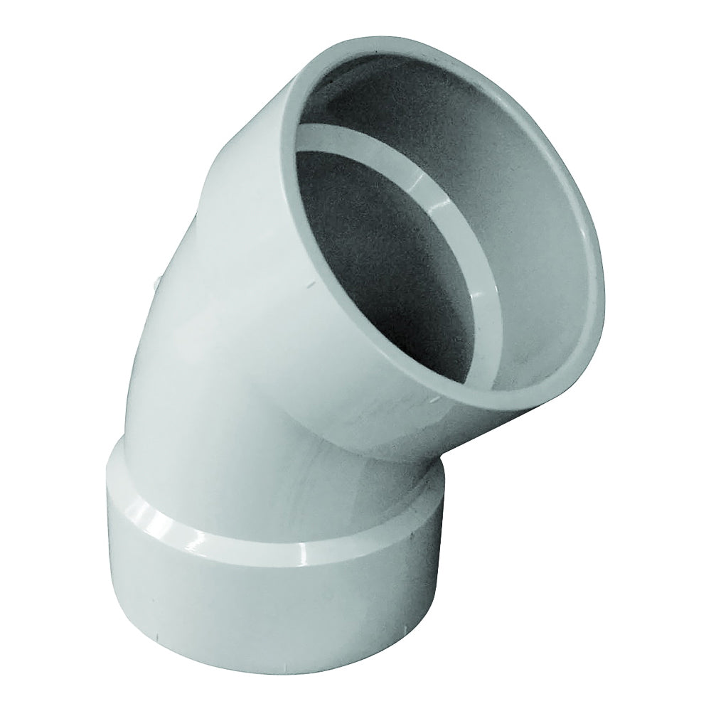 • Genova 700 Series 755163/70640 Drain Pipe Elbow, 4 in, Hub, 45 deg Angle, PVC, SCH 40 Schedule