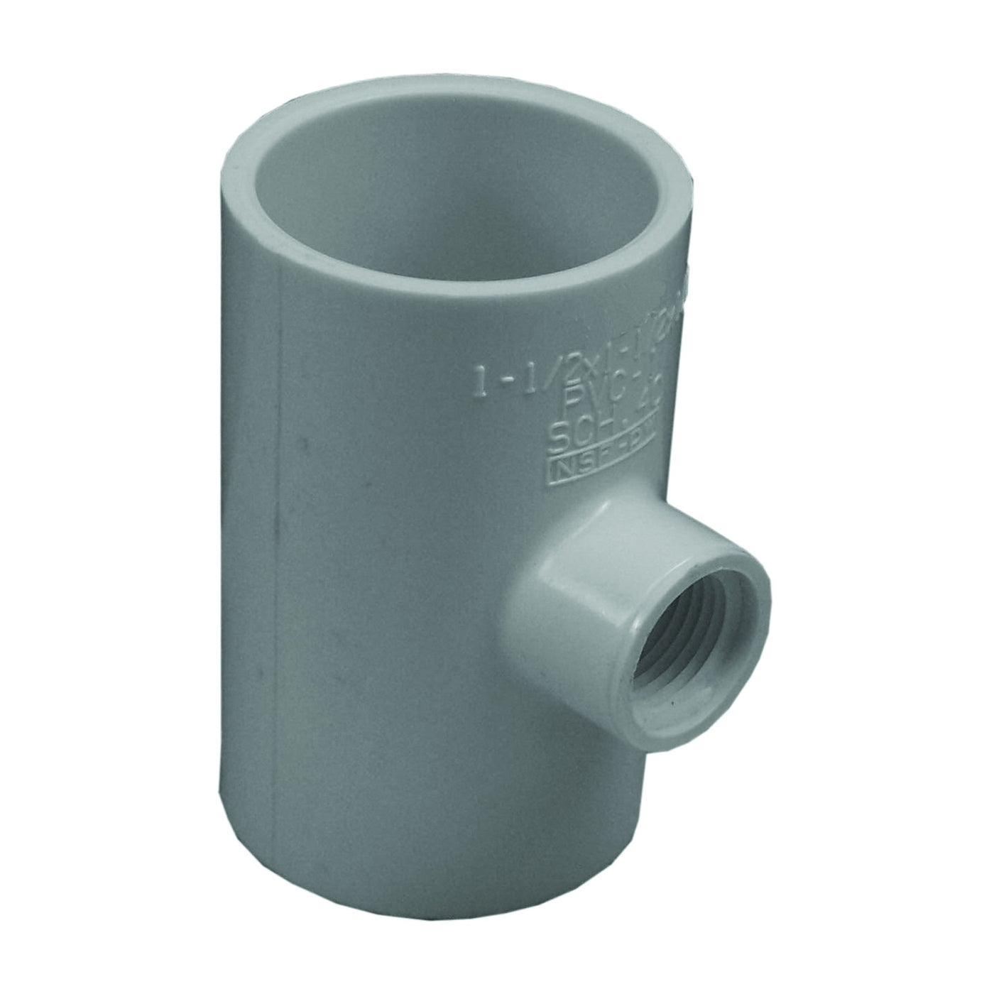 Solvent welds into main line to provide a threaded branch line of reduced size. Teflon tape is recommended for threaded joints. Conforms to ASTM D2466.