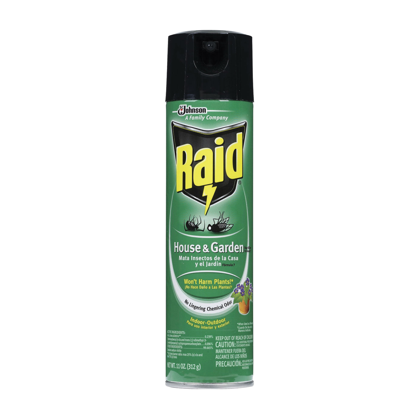 RAID® house and garden bug killer is specially formulated to kill crawling, flying and garden insects. Kills bugs and won't damage house or garden plants when used as directed. Use indoors or outdoors to kill ants, roaches, spiders, flies and other listed bugs on contact. For outdoor use this product on ornamental garden plants only.
