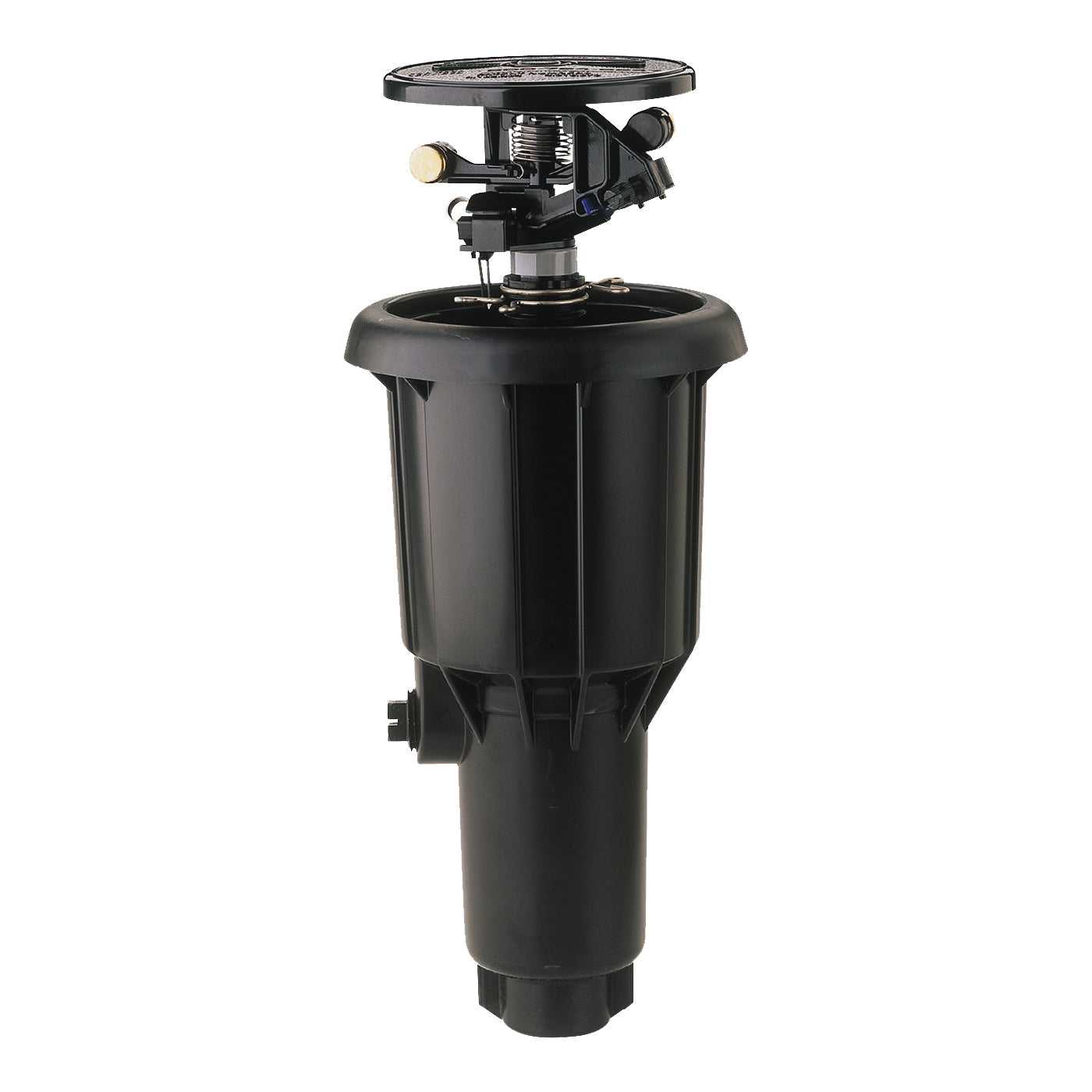 This heavy-duty Rain Bird pop-up impact sprinkler is noted for its long-lasting, trouble-free performance with hard water and heavy mineral content that can clog and corrode other sprinklers. It is easy to adjust and comes with 5 extra nozzles to customize watering rate.
