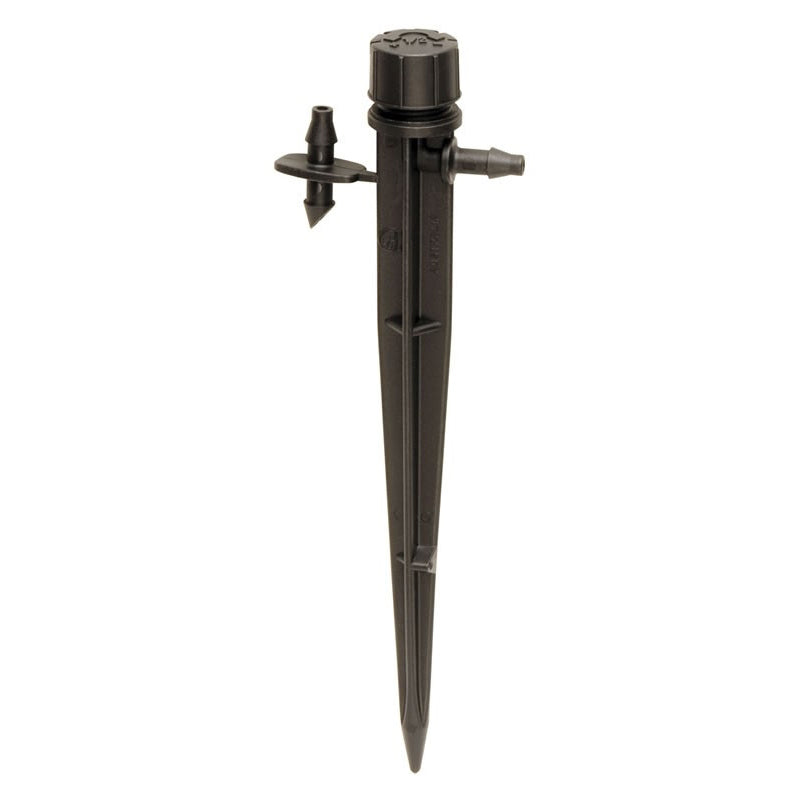 Half circle, Ideal for shrub plantings, trees, containers and flower beds. Connect to 1/2 in tubing with barbed coupling (included) and 1/4 in tubing. Spray pattern 180 deg rotation.