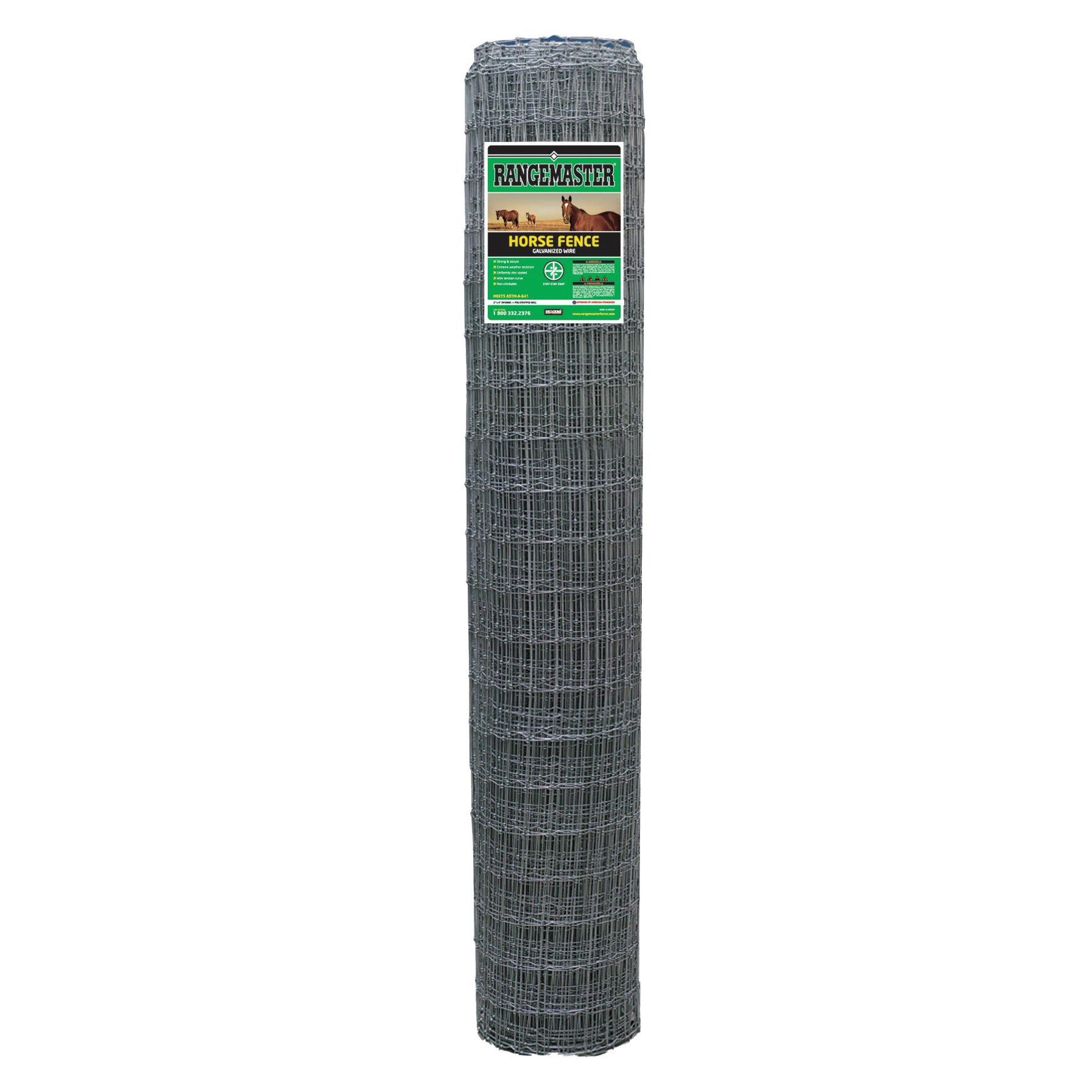 Horse fence is formed by horizontal and vertical galvanized wire, joined by stiff stay knots, forming little rectangles.