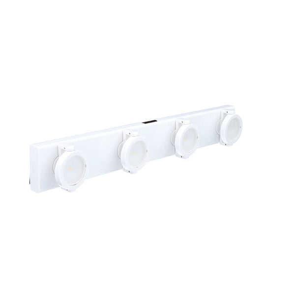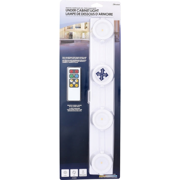 Quickly and easily illuminate dark corners and overlooked areas with help from the LPL704-series under cabinet light. The track light features a sleek-looking base with four-independently swiveling/pivoting light heads with super-bright white LEDs. Choose from three-power settings on, dim or off via push button or IR remote. The remote works from a range of up to 20 ft installation is easy with the included Hook-and-Loop tape or mounting bracket.