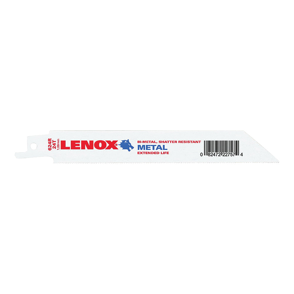 Lenox Reciprocating Saw Blade, Bi-Metal, Steel Cutting Edge, 1/2 in Tang, 24, Tuff Teeth, 6 in Length, 3/4 in Width, 0.035 in Thickness, Applicable Materials: Metal