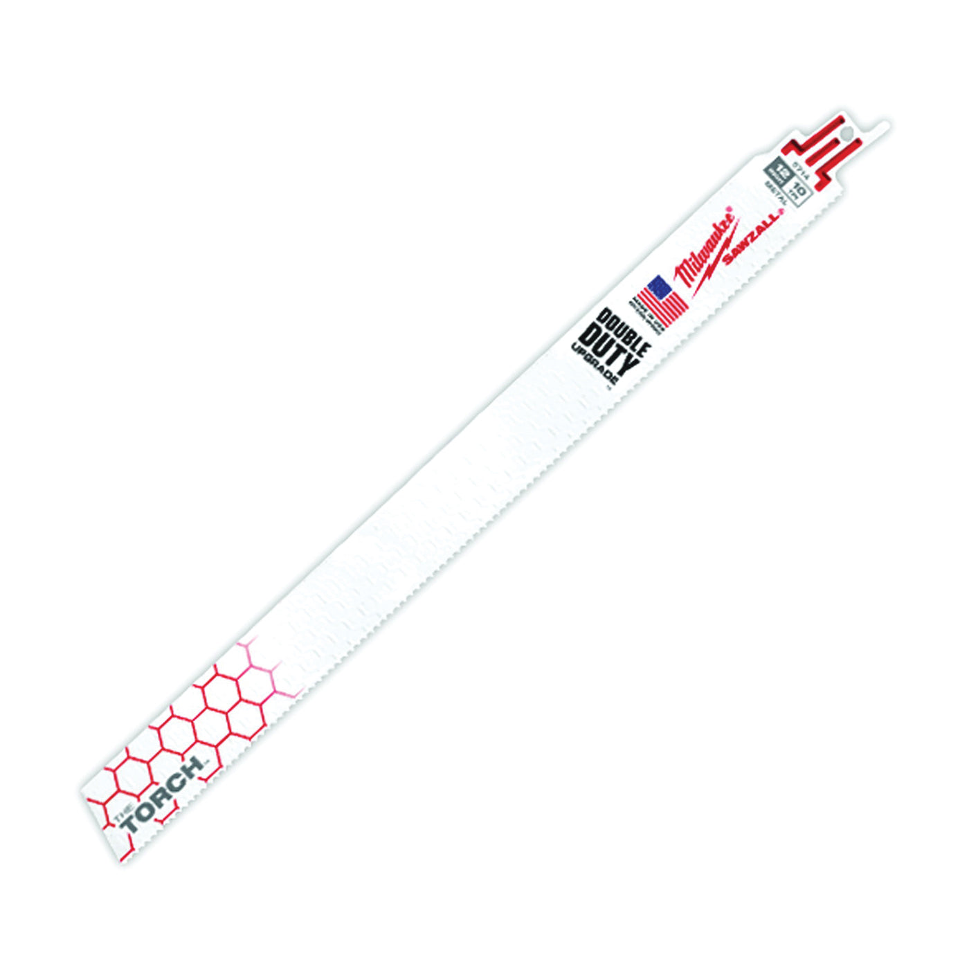 The Torch™ Metal-cutting blades with the Double Duty Upgrade™ feature a tooth form optimized for the longest life and maximum durability. Tough Neck™ is engineered to protect against tang breakage and delivers the strongest SAWZALL® blade tang on the market. Grid Iron™ features a stamped honeycomb pattern throughout the body of the blade that greatly increases the rigidity of the blade, making it the stiffest metal cutting SAWZALL® blade on the market. These blades are ideal for making tough, straight cuts.