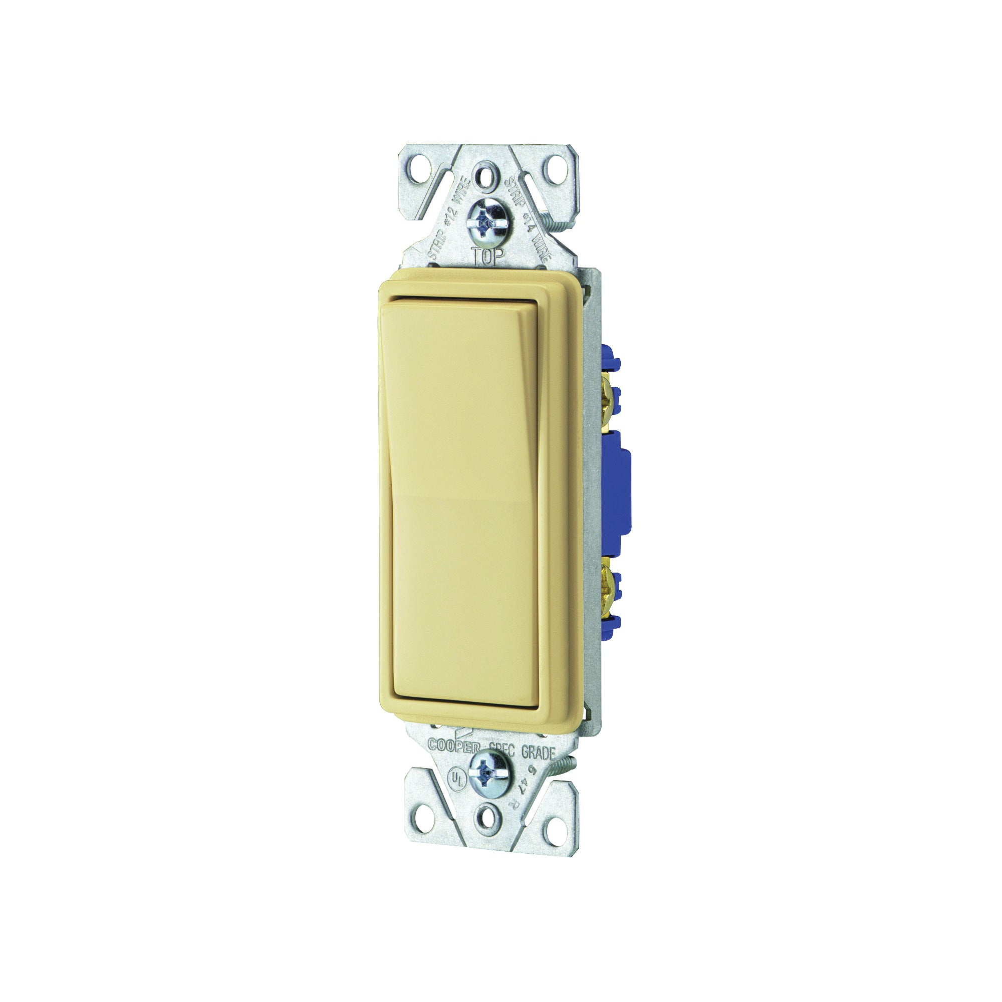 Ultrasonic welding and integrated construction of the strap and body. Backwire clamps on the side terminals for installation of #12 and #14 wire. Thermoplastic rocker, top and back body are virtually unbreakable. Screws accept slotted, Phillips and Robertson head tools for installation in both the USA and Canada. Longer, wider strap provides 40% more contact area to wall board. Virtually eliminates floating installations. Built-in wire stripper for #12 and #14 wire. Stippled ground screw standard. 15 A, 120/277 VAC rating for fluorescent lighting fixtures typical in commercial applications. Push in terminals accept #14 solid wire only. Temperature rating of -20 to 60 deg C. Meets flammability requirements per UL 94, 6504, V2 rated, VO rated. UL and cUL listed, meets all UL20 requirements.