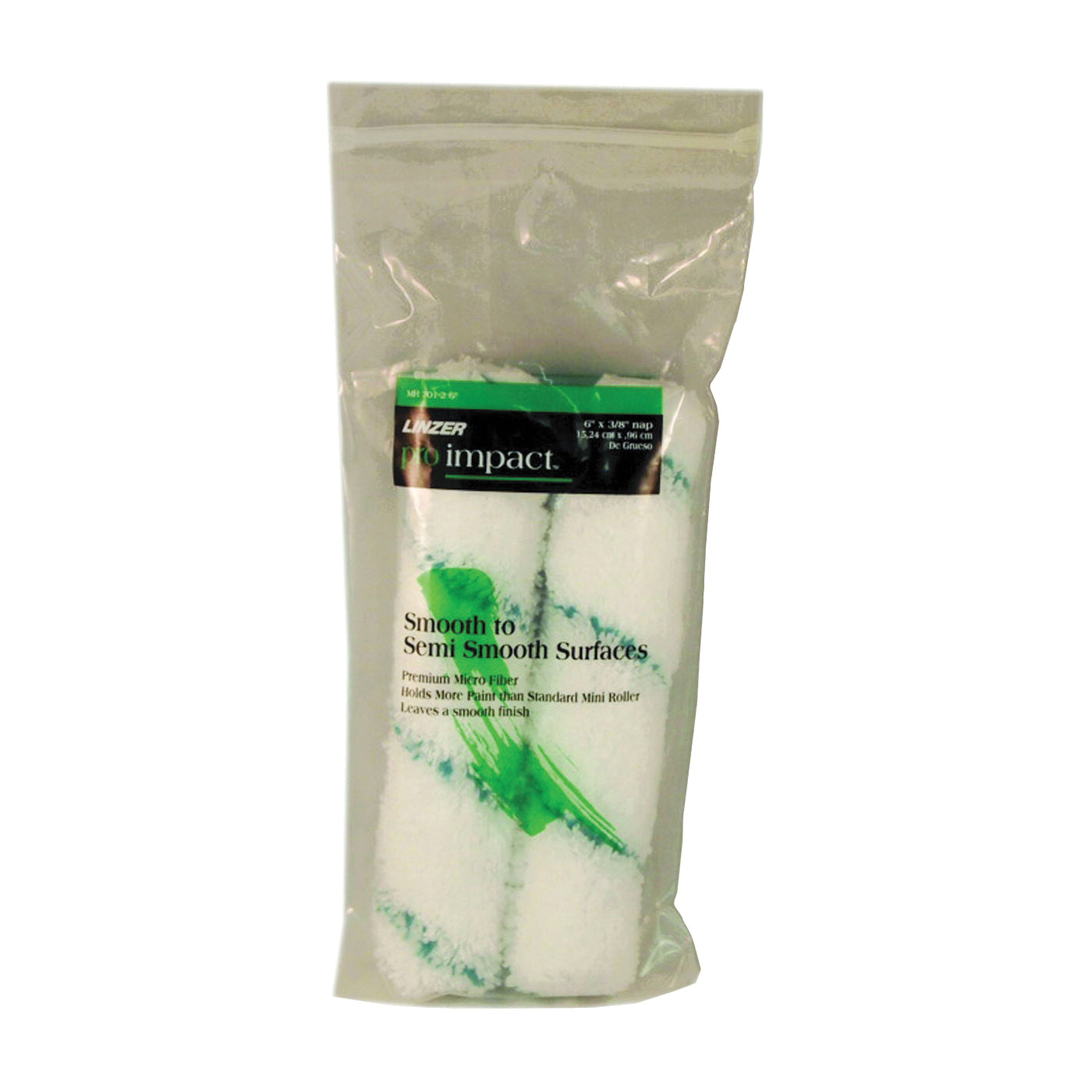Linzer Pro Edge Mini Paint Roller Cover, 3/8 in Thick Nap, 6 in L, Microfiber Cover, Green/White, Surface Type: Semi-Smooth