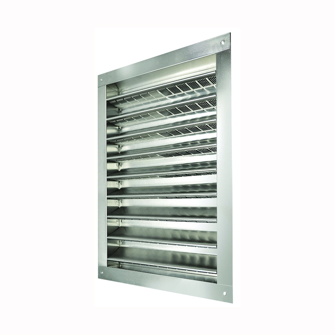 One-piece aluminum central louver panel construction with pre-punched louvered vanes. Designed for flush or recessed mounting.