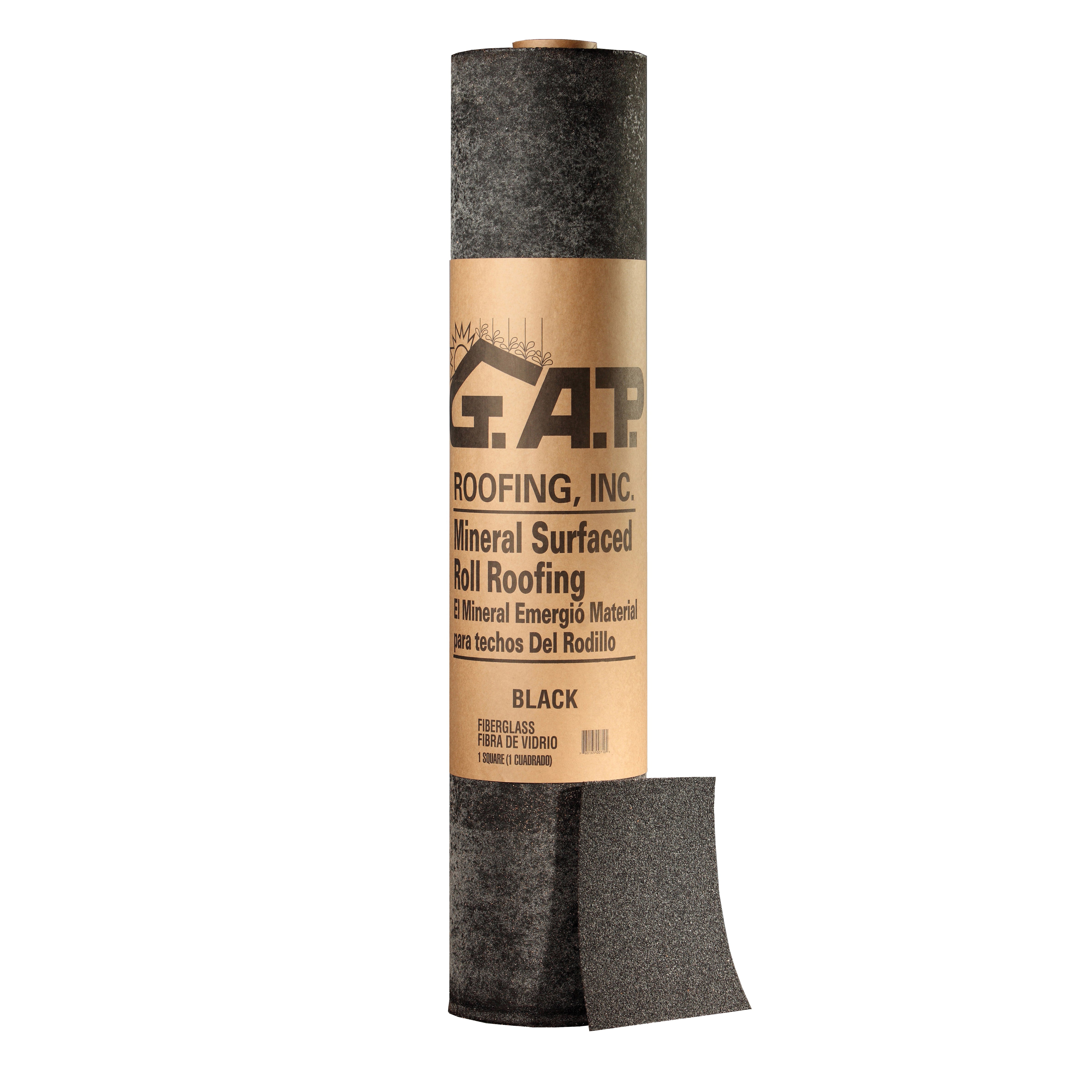 Constructed from fiberglass mat, impregnated and coated with hot asphaltic saturant, then coated on the weather side with mineral granules in a 36 in wide path. This forms a 36 in wide mineral surfaced roll. For use with low-sloped roofs. 90# can be used as an underlayment and a final cap sheet. 108 square foot coverage. 50 mil thickness.