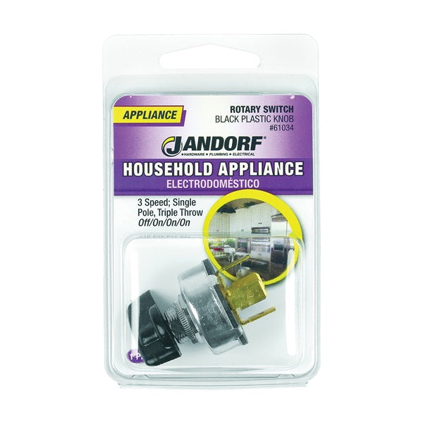 Jandorf Single Circuit Rotary Switch, 125 V, 1 A, 1 Pole, SPTT Contact Configuration, Plastic, Black