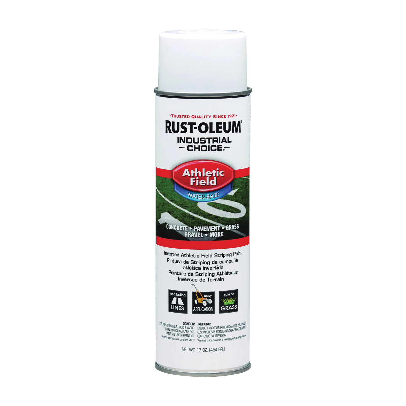 Easily mark athletic fields, playgrounds, golf courses and more with RUST-OLEUM® INDUSTRIAL CHOICE® AF1600 athletic field striping paint. This water-based paint produces durable, long-lasting lines that withstand weather and wear. Sprays upside-down for easy use.