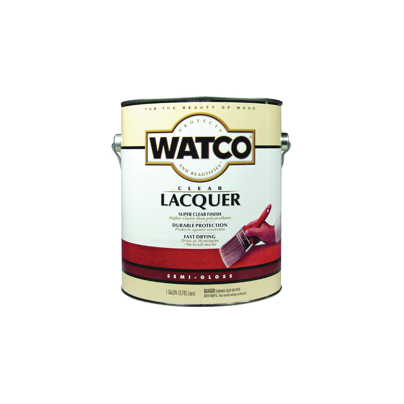 WATCO® Lacquer clear wood finish is the finest brushing lacquer available. WATCO® Lacquer fills in the pores of most wood types eliminating the need for wood filler. Apply to furniture, doors, cabinets and paneling for a crystal-clear, durable wood finish. Dries in 30 mins and does not require sanding between coats. Please read product labels for additional directions and precautions before using.
