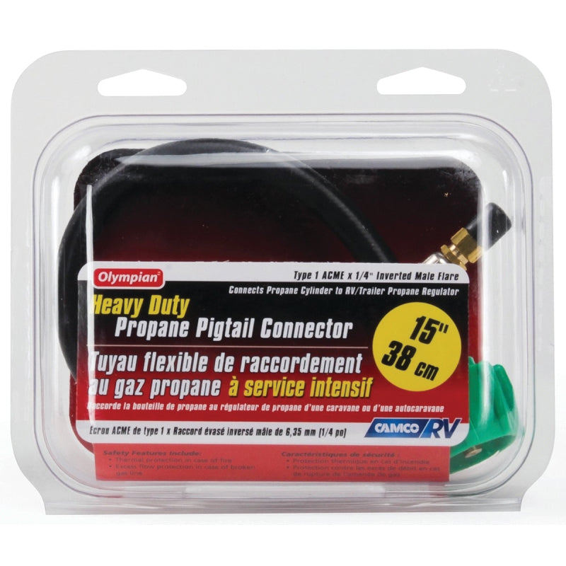 Camco USA Hose Connector, Pigtail, Cable Size: 1/4 in, Dimensions: 15 in L