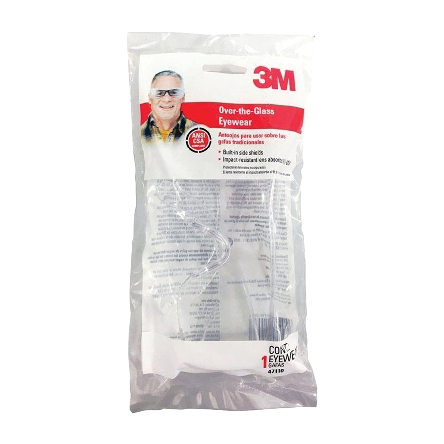 Give your eyes the protection they deserve without compromising your sight with 3M™ over-the-glass safety eyewear. Specifically designed to wear over your prescription eyeglasses, this safety eyewear helps keep dirt and small flying particles out of your eyes and off your glasses while blocking out the sun's harmful UV rays. These safety glasses are designed to fit comfortably on your face and feature built-in side shields that provide protection. The impact-resistant, scratch-resistant lens continues to perform from one project to the next. So whether you're wood working in the shop or mowing your lawn, get the job done accurately and safely with the help of 3M™ over-the-glass safety eyewear.