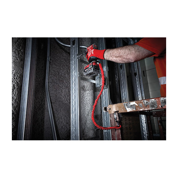 • Milwaukee 48-22-8810 Locking Tool Lanyard, 36.3 in L, 10 lb Working Load, Rubber/Nylon Line, Red, Carabiner End Fitting