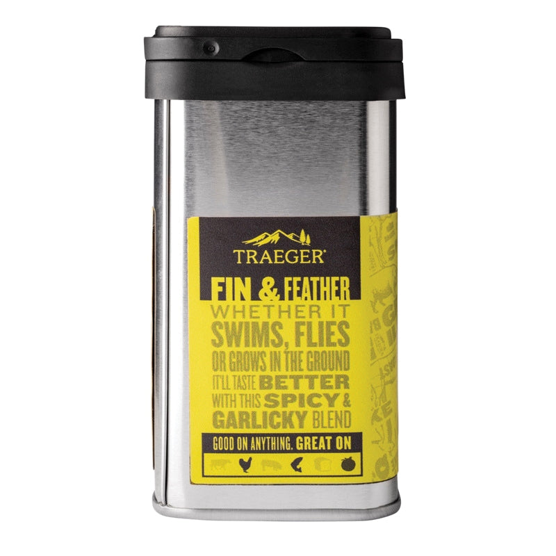 Amp up the flavor of everything from turkey to trout with Traeger Fin & Feather Rub. This savory rub features garlic, onion and just a hint of spiciness to complement that flavor of fish and fowl without overpowering it.