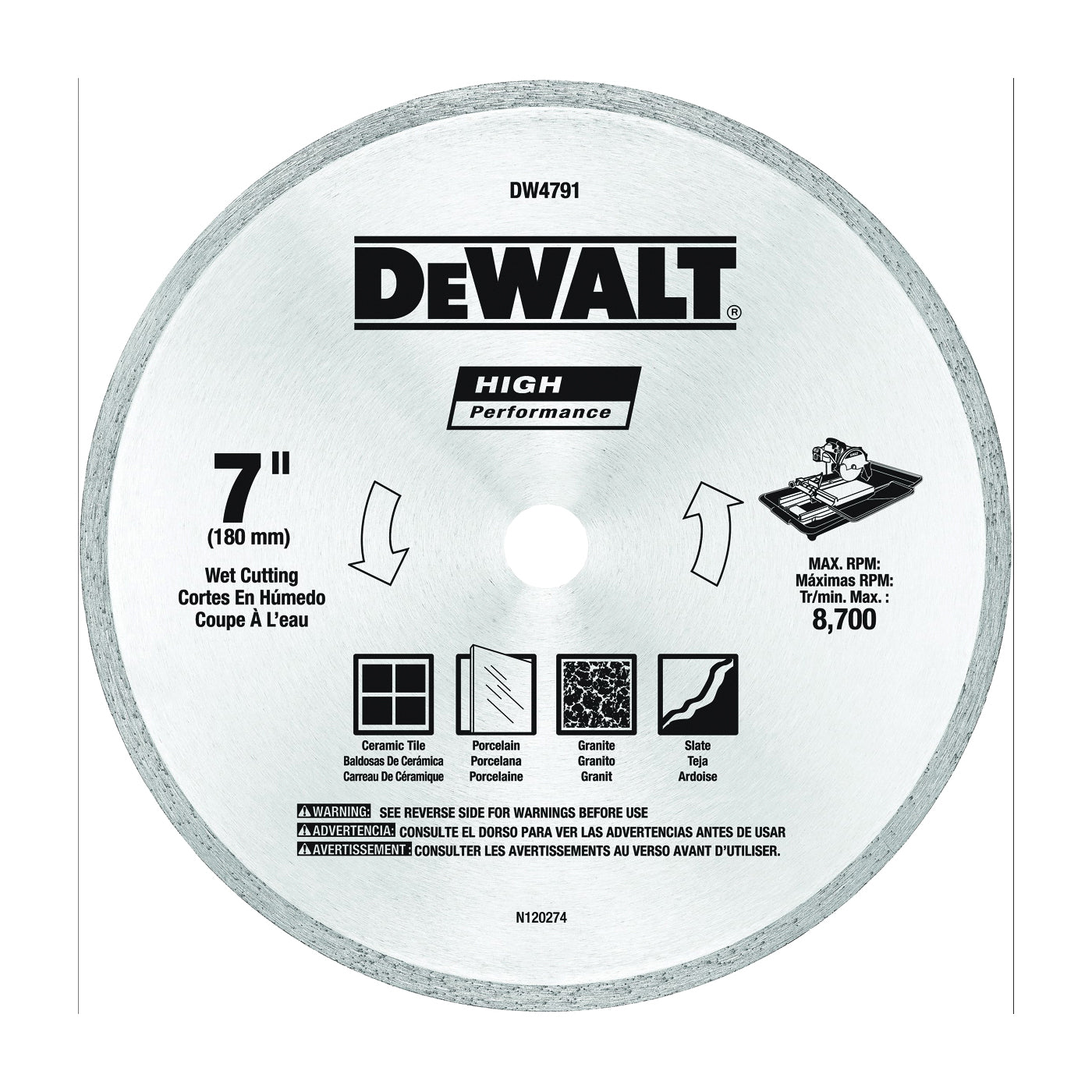 Ideal for both wet and dry tile and stone cutting, DeWALT® HP tile blades features a high-performance diamond matrix that delivers long life and expedited, chip-free cutting. A thin kerf helps to increase speed while minimizing dust.