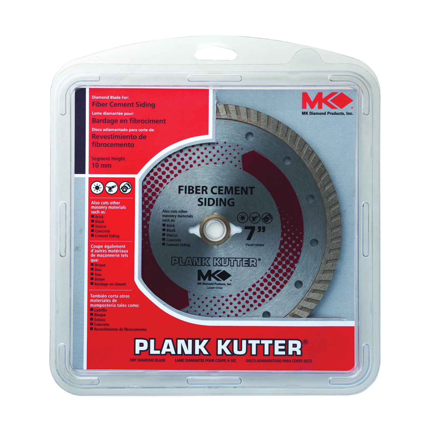 Plank Kutter diamond blades are specifically manufactured for dry cutting fiber cement plank siding, stucco and tile underlayment board as well as other masonry materials like brick, block, landscape pavers, concrete and asphalt. The turbo continuous rim design quickly removes stock from the cut, keeping the blade cool and true running.