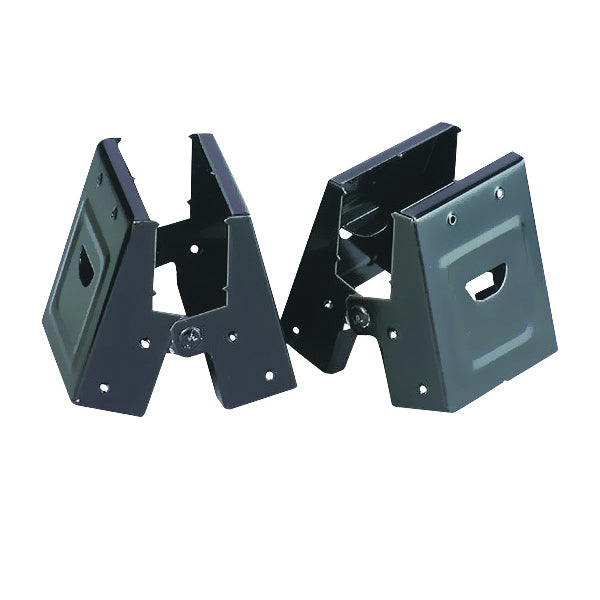 All steel construction. Riveted bracket for added strength and flared nail holes for fast take-down. Four nail holes on top double holding power to prevent separation from rail. Black enamel finish.