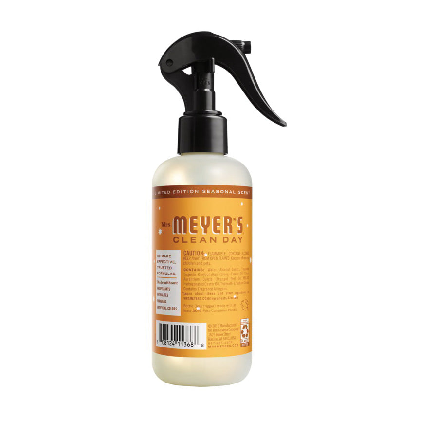 Mrs. Meyer's clean day room fresheners are specifically made to quickly freshen any room, while also providing a special, singular scent for your entire home. The non-aerosol bottle contains an effective, trusted air freshener formula made with essential oils, fragrance and other thoughtfully chosen ingredients. Plus, the plant-derived ingredients are safe to use on many fabric types (excluding delicates). Perfect for when you need to add a little garden inspired fragrance to your home between cleaning days. Made without propellants, phthalates, parabens or artificial colors and of course, always a cruelty-free room air freshener. Bottles (less trigger) made with at least 30% postconsumer plastic.