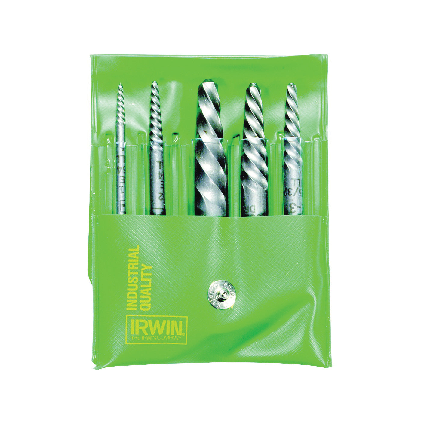 For removing broken screws and bolts. Left hand spiral, tapered flute. Correct drill size stamped on each screw extractor. Eliminates redrilling and retapping for a larger screw. Includes EX1, EX2, EX3, EX4 and EX5 in plastic pouch.