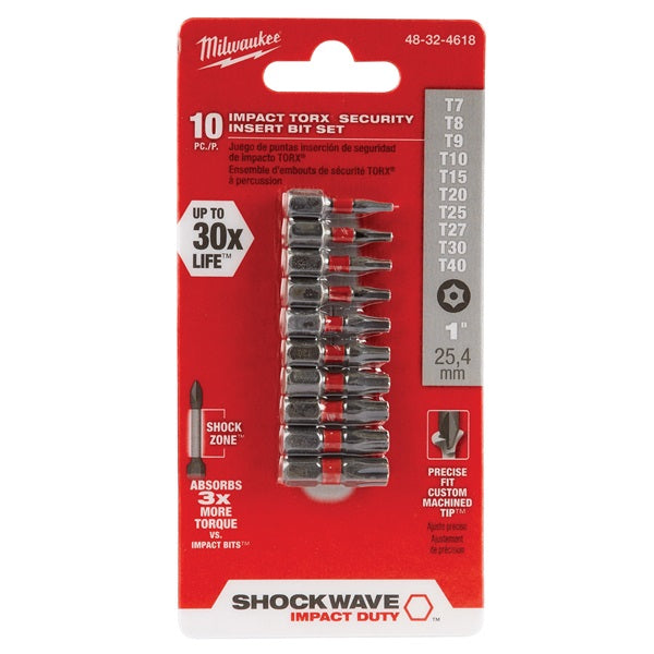 • Milwaukee 48-32-4618 Security Insert Bit Set, 10-Piece, Steel, Black Phosphate