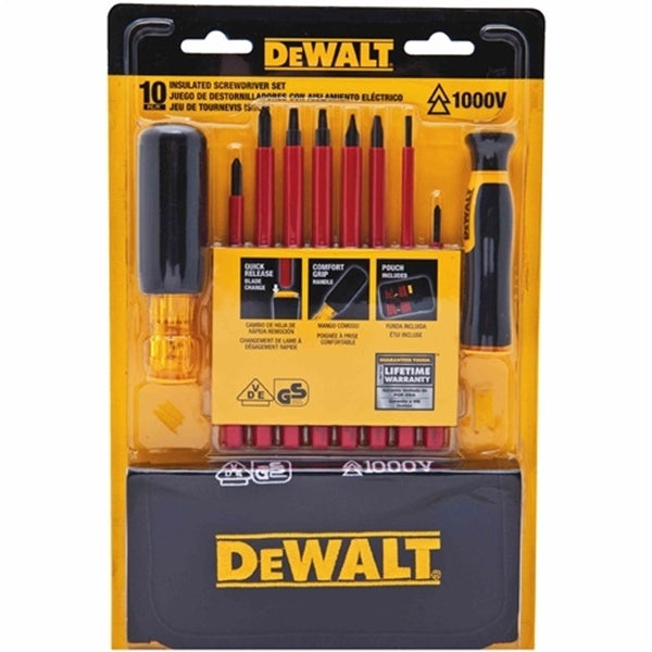 The 10-piece insulated vinyl grip screwdriver set is a space saver with its multi-blade design. The quick-release mechanism allows for easy and secure blade changes. The set also comes in a durable tool pouch to keep everything in one place.