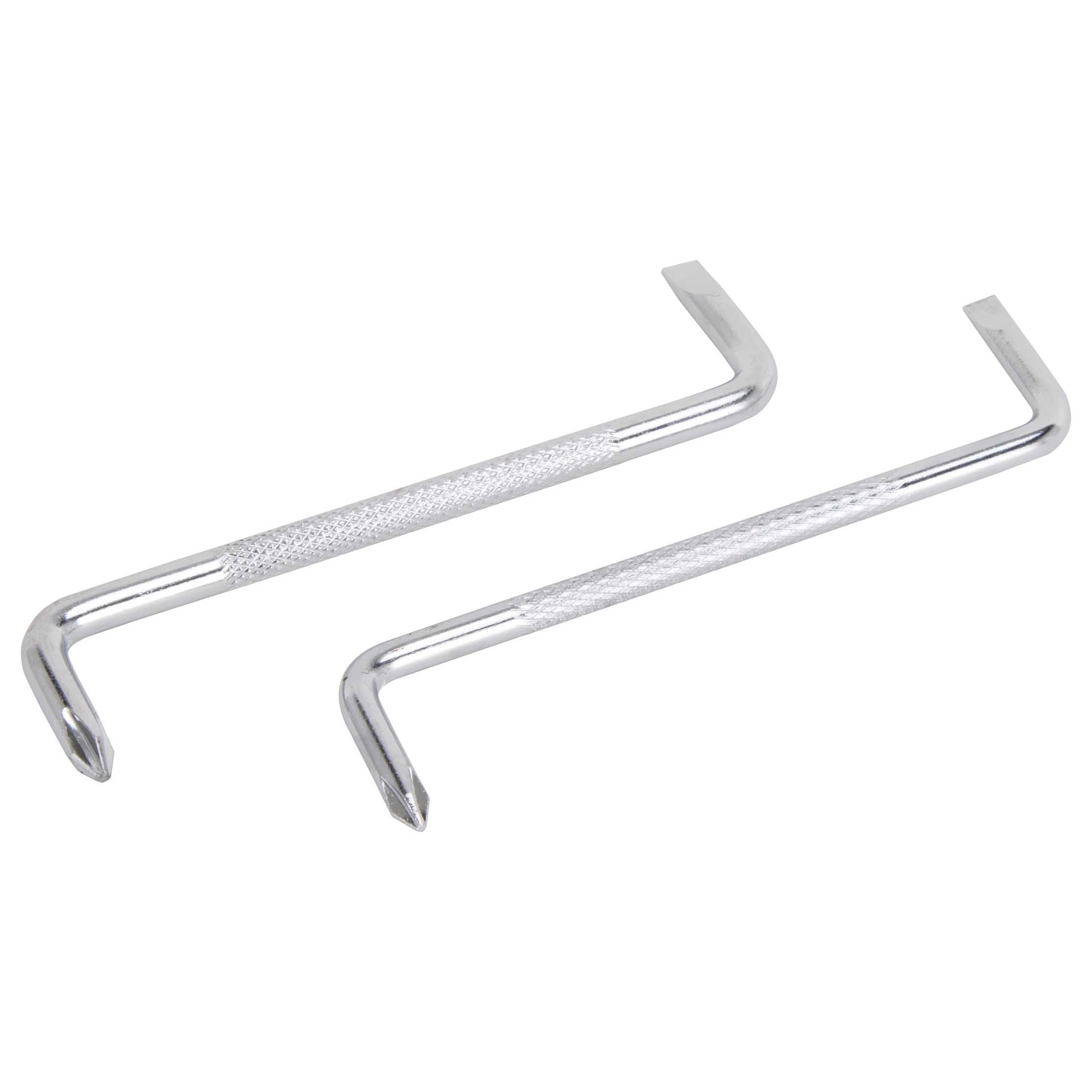 The Vulcan Screwdriver Offset Set 2PcHeat treated and chrome plated for durability, knurled handle for sure grip. It's offset heads reach targets in angles and tight places. The set includes one each: Slotted 3/16 in and Phillips #1, Slotted 1/4 in and Phillips #2.