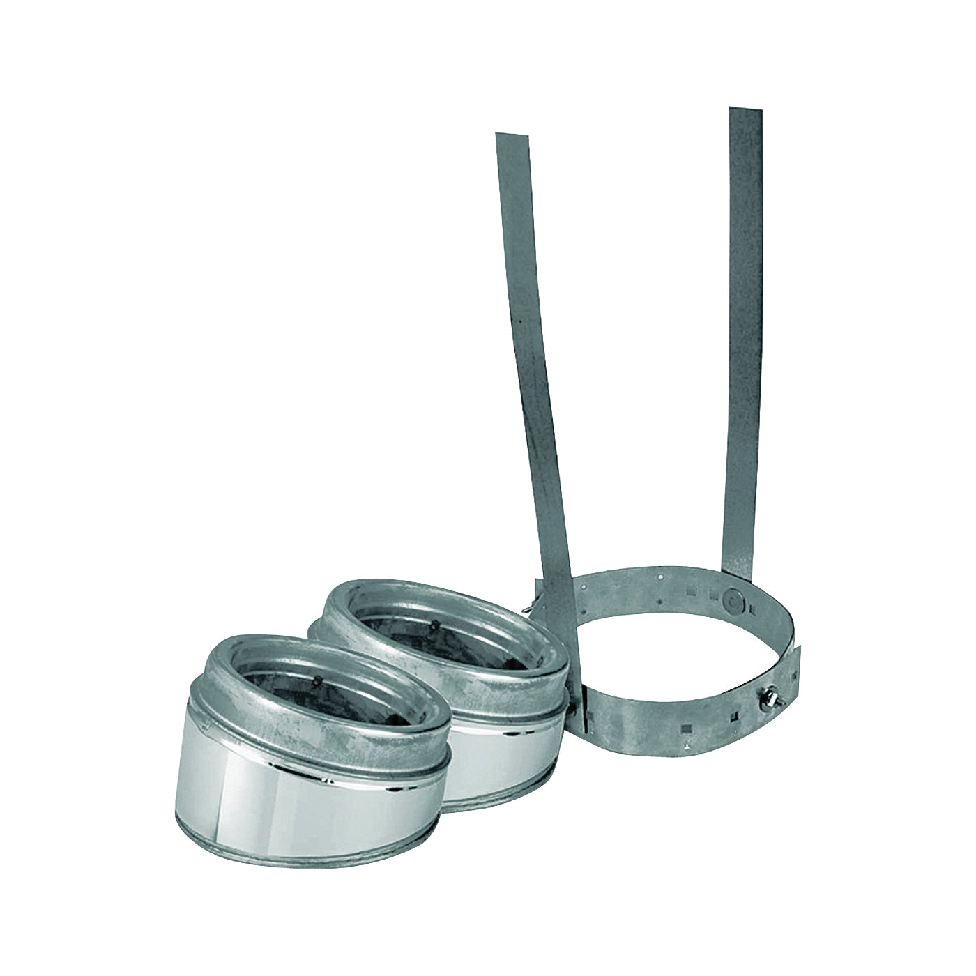 Can be used for fixed offsets of 15 deg slope or in pairs for offsets adjustable from zero to 30 deg slope. Greater angles are prohibited by UL standard 103 and by the terms of the product listing. Required locking bands (2 packaged with each elbow kit) allow 360 deg rotation and lock the components together in place at the exact offset required. Insulated elbows can be used at the same 2 in air space clearance as chimney sections. Includes 2 elbows, 2 locking bands and interior resupport.
