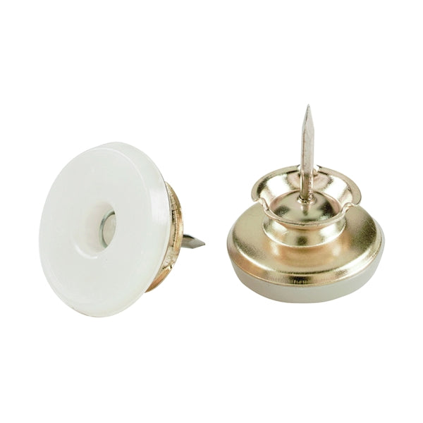 For wooden furniture legs on stools, chairs and tables. Allows furniture to move smoothly over floors without damaging it. Brass-plated with swivel plastic base and built in nail.
