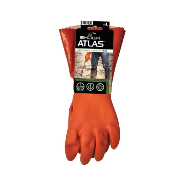 Strong yet extremely soft and flexible, SHOWA Atlas® 620 is a durable, double-dipped medium-weight PVC glove that ensures grip and provides liquid-proof protection.