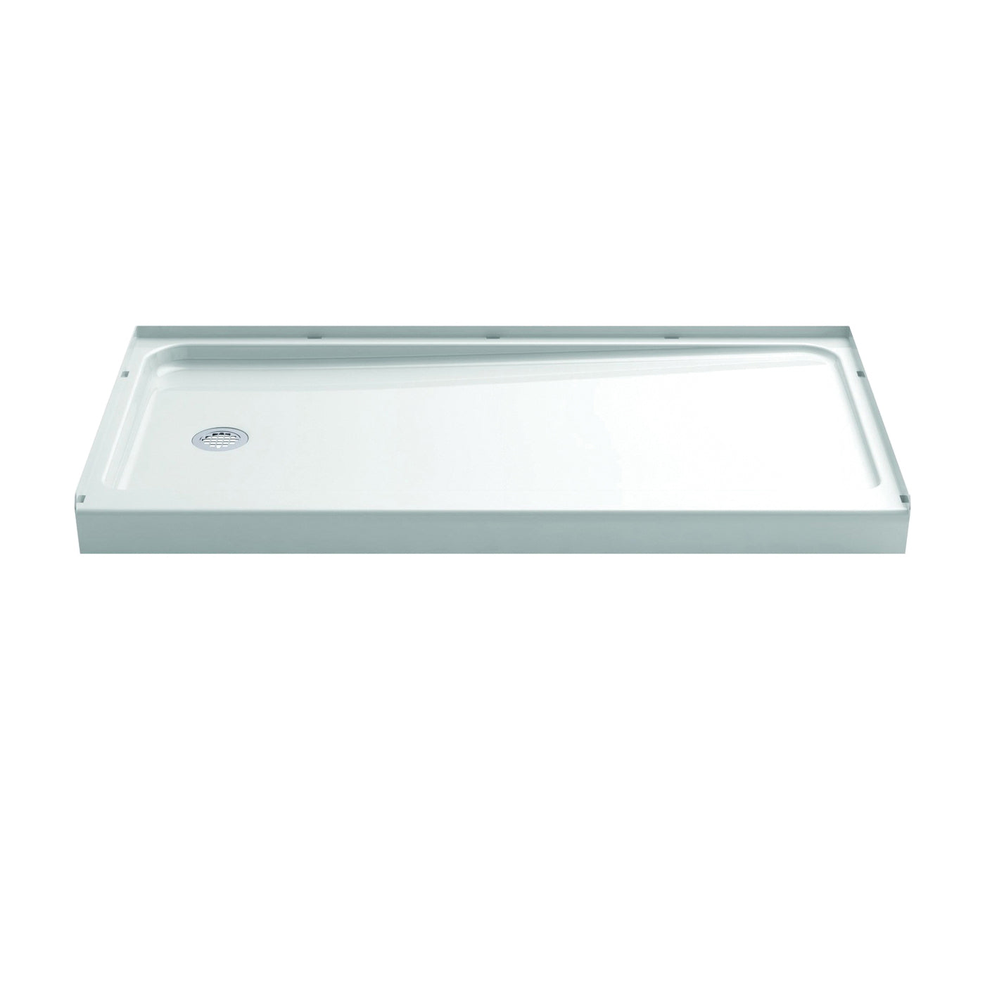 Customize your look by pairing an Ensemble shower base with tile walls or an Ensemble wall set. Built of solid Vikrell� for material strength, durability and lasting beauty, this shower base is a great choice for high-traffic bathrooms. Installable by just one person, it's a quick and easy replacement option for a standard 5 ft bath. Its smooth, shiny surface is easy-to-clean.