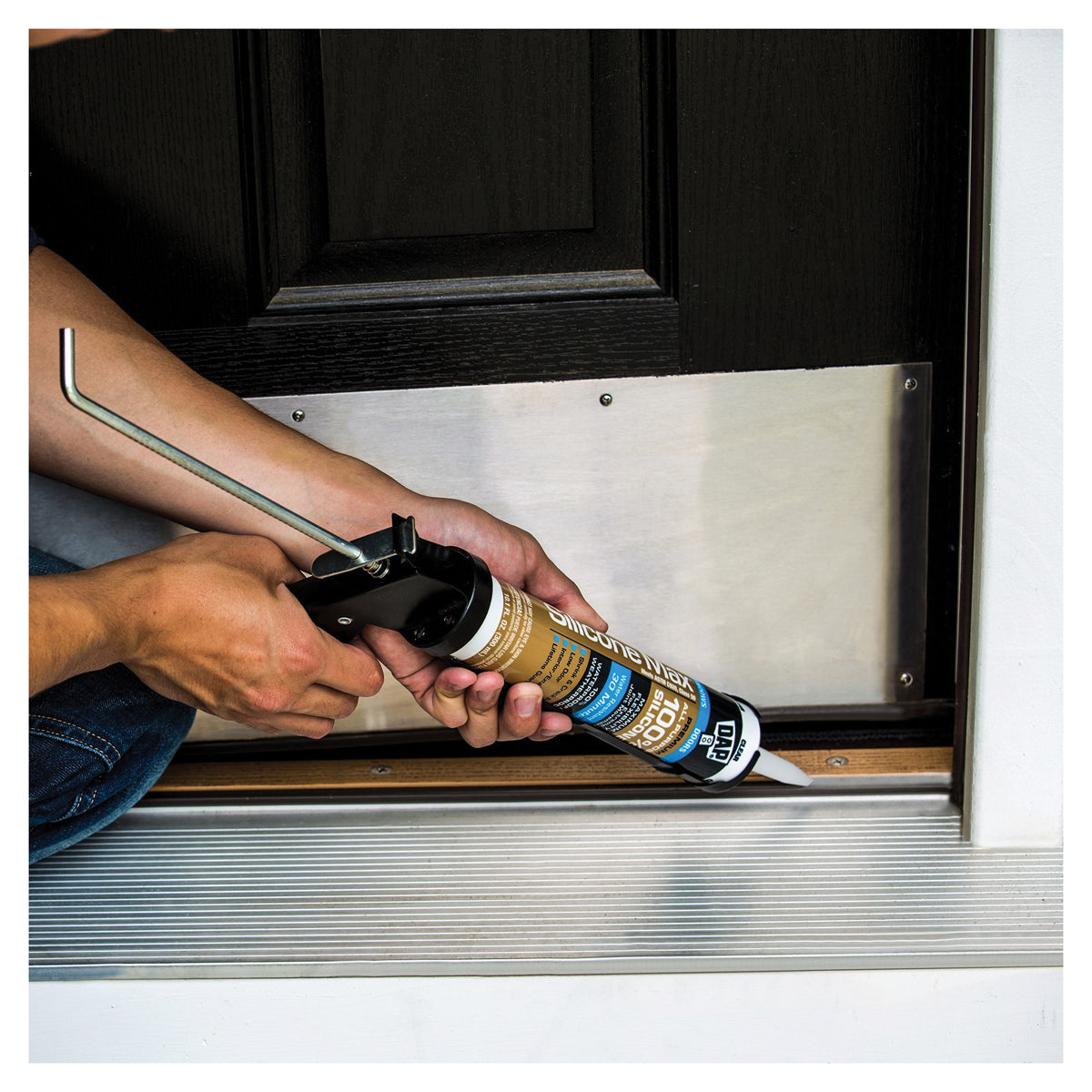 DAP SILICONE MAX™ premium all purpose 100% silicone provides maximum silicone performance to seal out air and water in window, door and siding applications. It has +/-50% joint movement for maximum flexibility and adhesion so it withstands contraction and expansion caused by extreme temperature and weather fluctuations without cracking or losing adhesion. Water ready in 30 min for a 100% waterproof and weather-proof seal. Shrink and crack-proof. Cured sealant is mold and mildew-resistant. Low in odor and VOC compliant. Interior/exterior use. Lifetime guarantee.