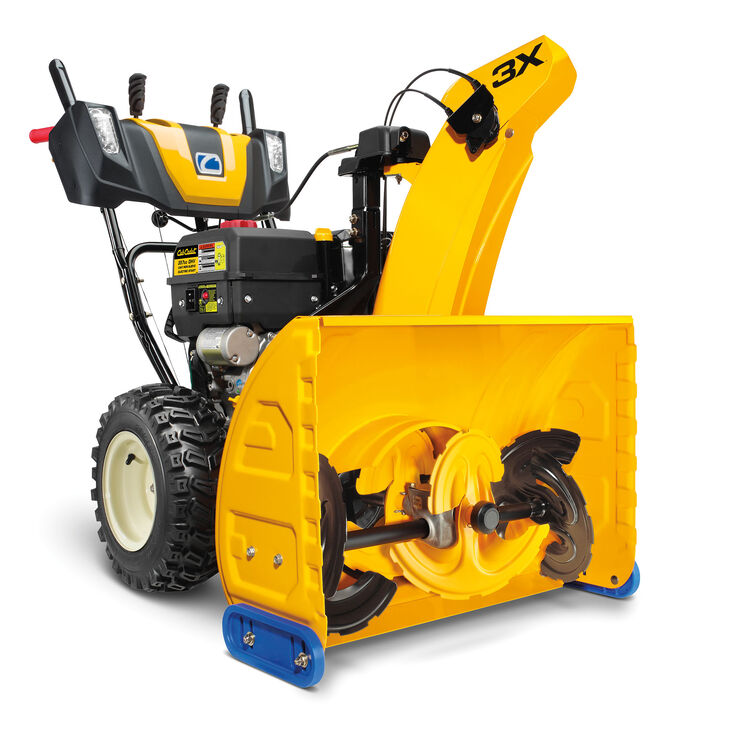 • Three-stage system• Push button 110V electric start• Clears 28 IN wide with 21 IN intake height• 357cc gas Cub Cadet OHV engine• Trigger-control power steering for excellent control, maneuverability and one-hand operation• LED headlights• 6 Forward, 2 Reverse speeds• 3-Year limited residential warranty / 5-Year auger gearbox limited warranty