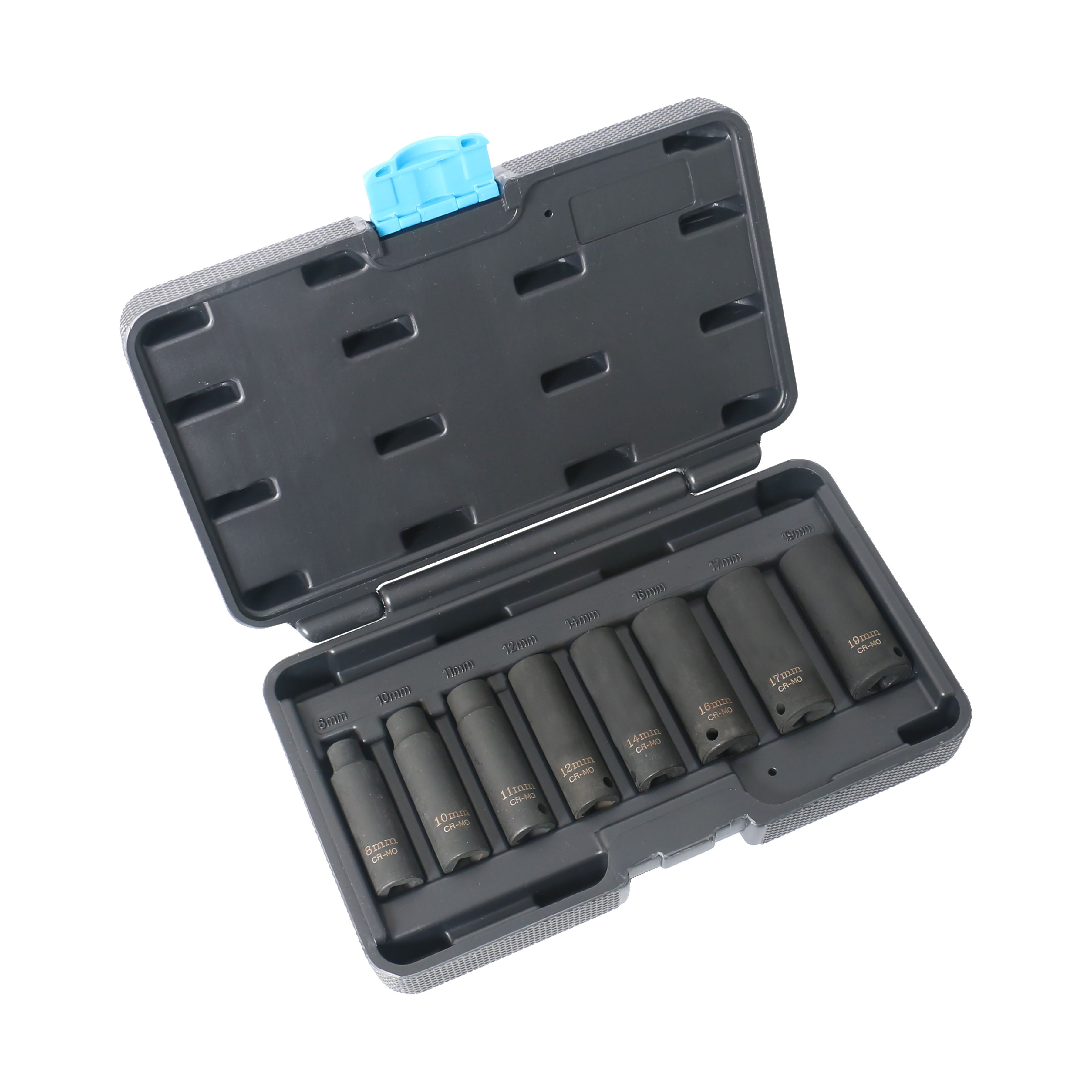 | Includes | 8 PCS: 3/8 in Drive 6 PT Deep Impact Socket - 8, 10, 11, 12, 14, 16, 17 and 19 mm |