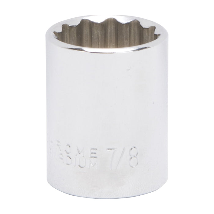 The Vulcan 1/2 drive sockets are manufactured from chrome vanadium steel and heat treated for added strength and wear protection; providing durability for a lifetime of hard use. Each socket features chamfered lead INS for quick and easy placement onto fasteners every time. Their polished chrome finish resist rust and corrosion and easily wipes clean of oil and dirt.