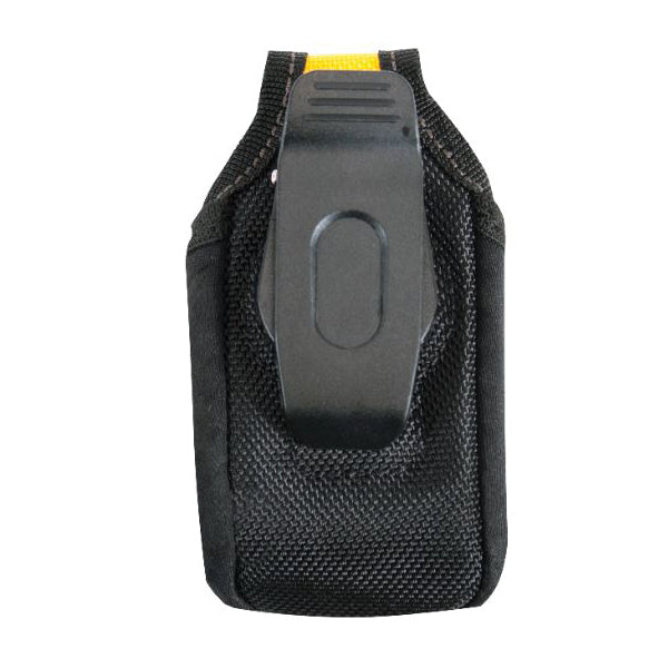 The DeWALT heavy-duty cell phone holder securely clips to belt or waistband. Conveniently swivels to position and can be worn on either left or right side. Also padded stretch neoprene body securely holds older smartphones.
