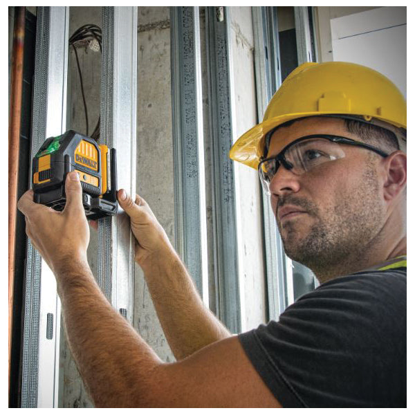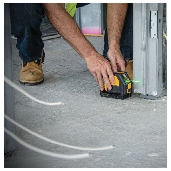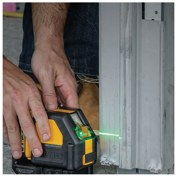 DEWALT Cross Line Laser Level, Measuring Range: 165 ft, Accuracy: 1/8 in, Number of Beams: 2, Laser Color: Green, Battery Type: Lithium-Ion, Battery Voltage: 12 V, IP Rating: IP65, Includes: Blow Mold Case, Extended Ceiling Bracket, 12 V Battery, Charger, Green Cross Line Laser, Target Card
