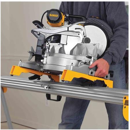 The DW7231 miter saw stand tool mounting brackets feature easy release attachment clamps that allow fast attachment and detachment of tool.