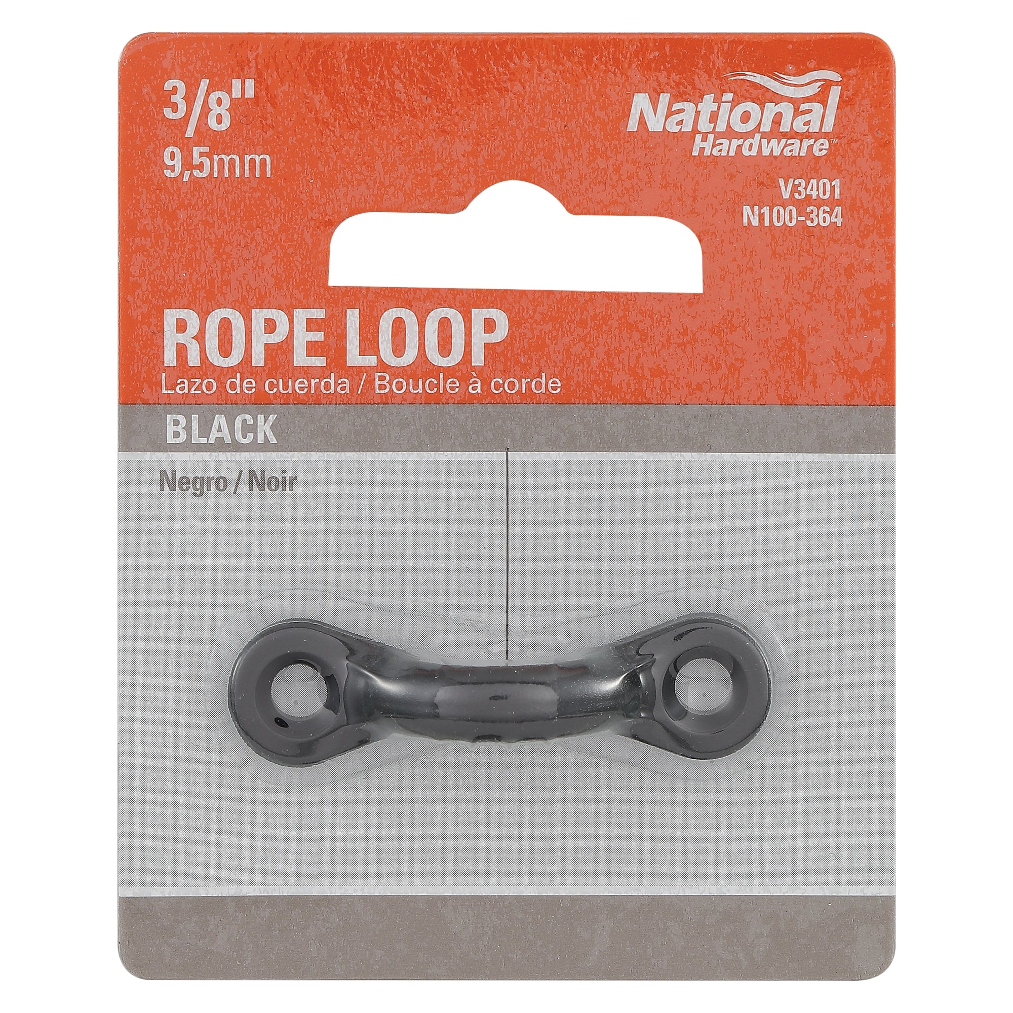 National Hardware Rope Loop, Nylon/Stainless Steel, Black, Mounting Hole Diameter: 7/32 in, Screw Mounting, Dimensions: 1-15/16 in L x 19/32 in H