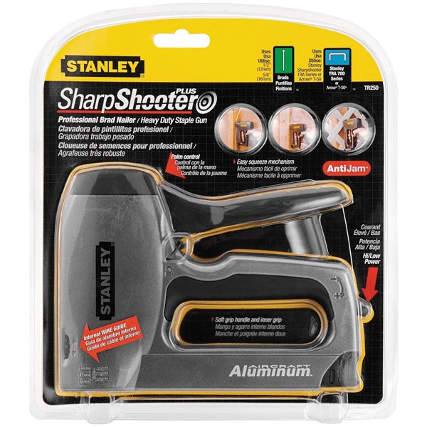 This Stanley staple and brad gun feature an easy-to-squeeze trigger and comfortable handle to reduce hand fatigue. The all metal drive channel ensures better penetration. It can be used to drive Stanley SharpShooter TRA700 Series or arrow T-50 heavy-duty narrow-crown staples or 1/2 in, 9/16 in or 5/8 in brads.