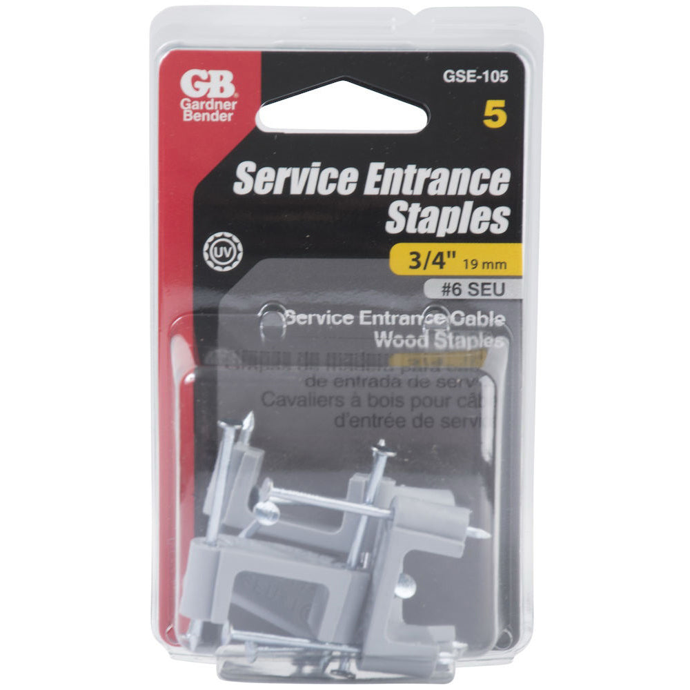 These Gardner Bender #6 service entrance cable straps 5 pack secure cable and are designed for recessed nail heads when the strap is fully driven into wood.